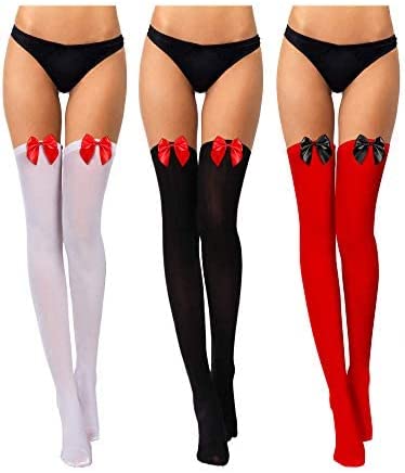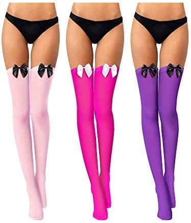 Each package includes three pairs of thigh high stockings in different color combinations, allowing for versatile styling options. The common size fits most women and girls, ensuring a comfortable and flattering fit.