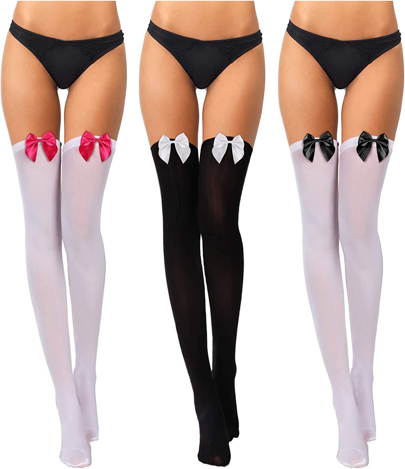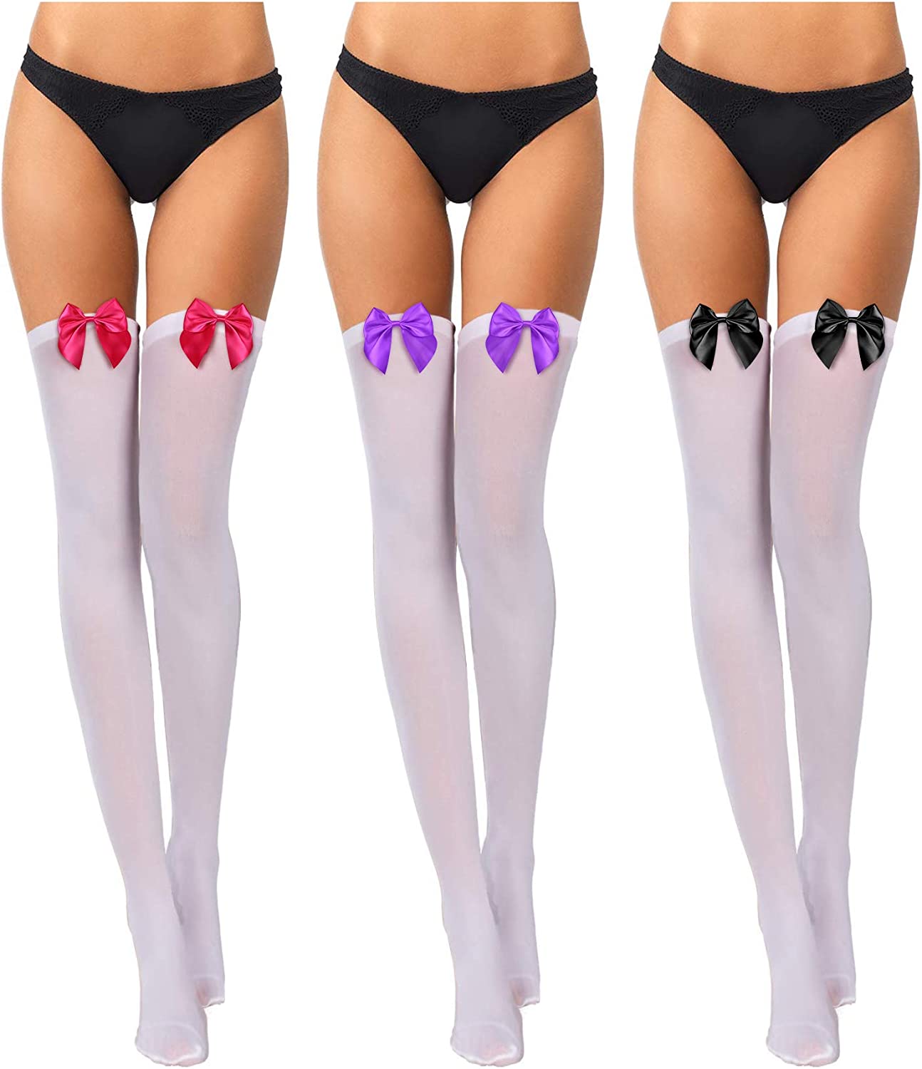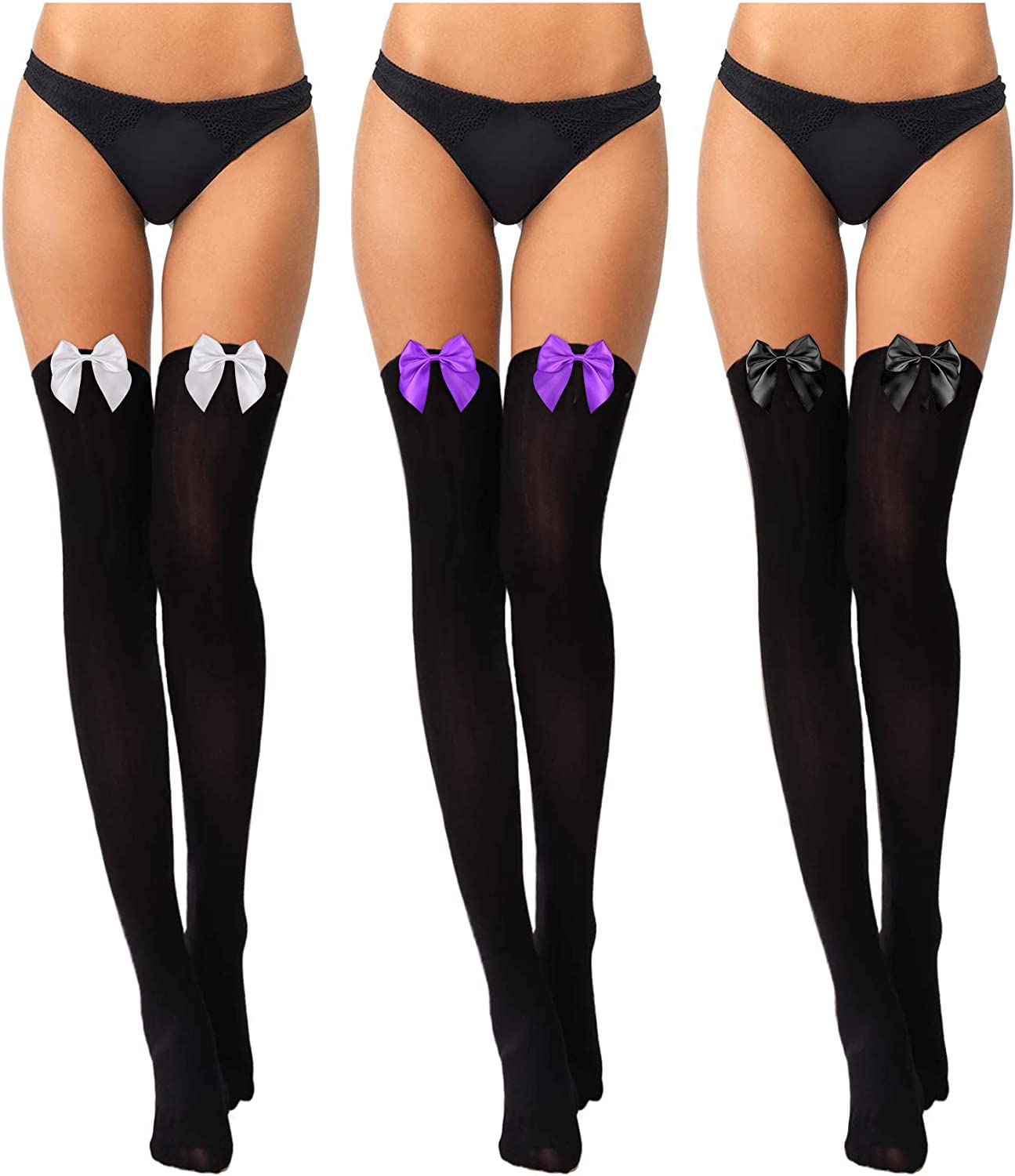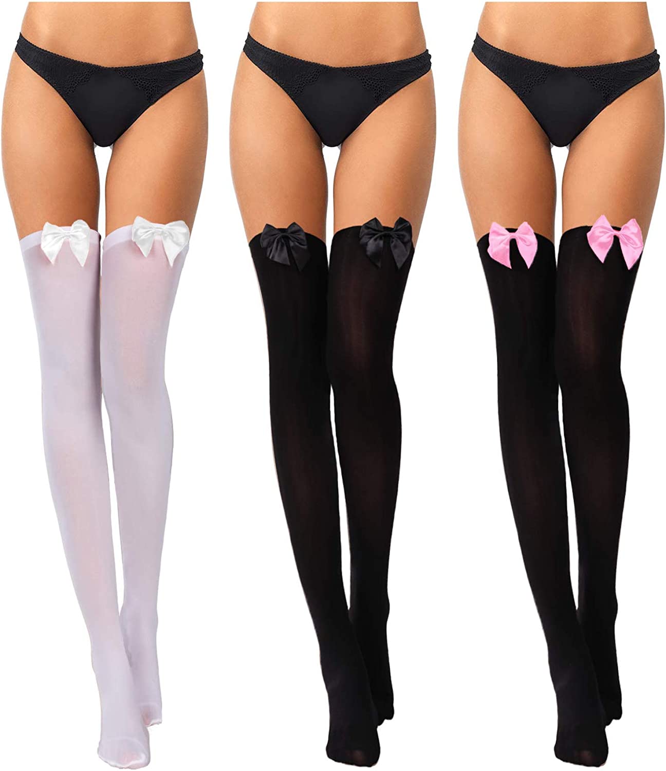 3 Pairs Women's Thigh High Socks with Bows
