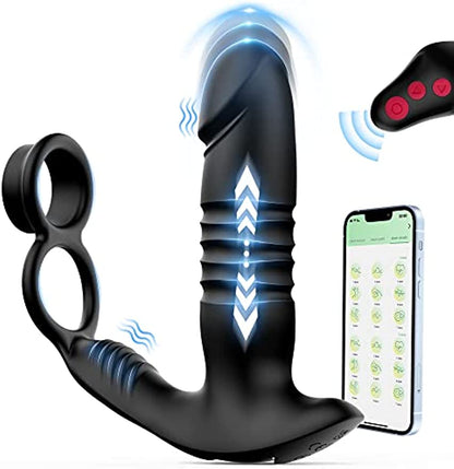 Dual Cock Ring Prostate Massager with Anal Plug - App & Remote Control - 7 Modes