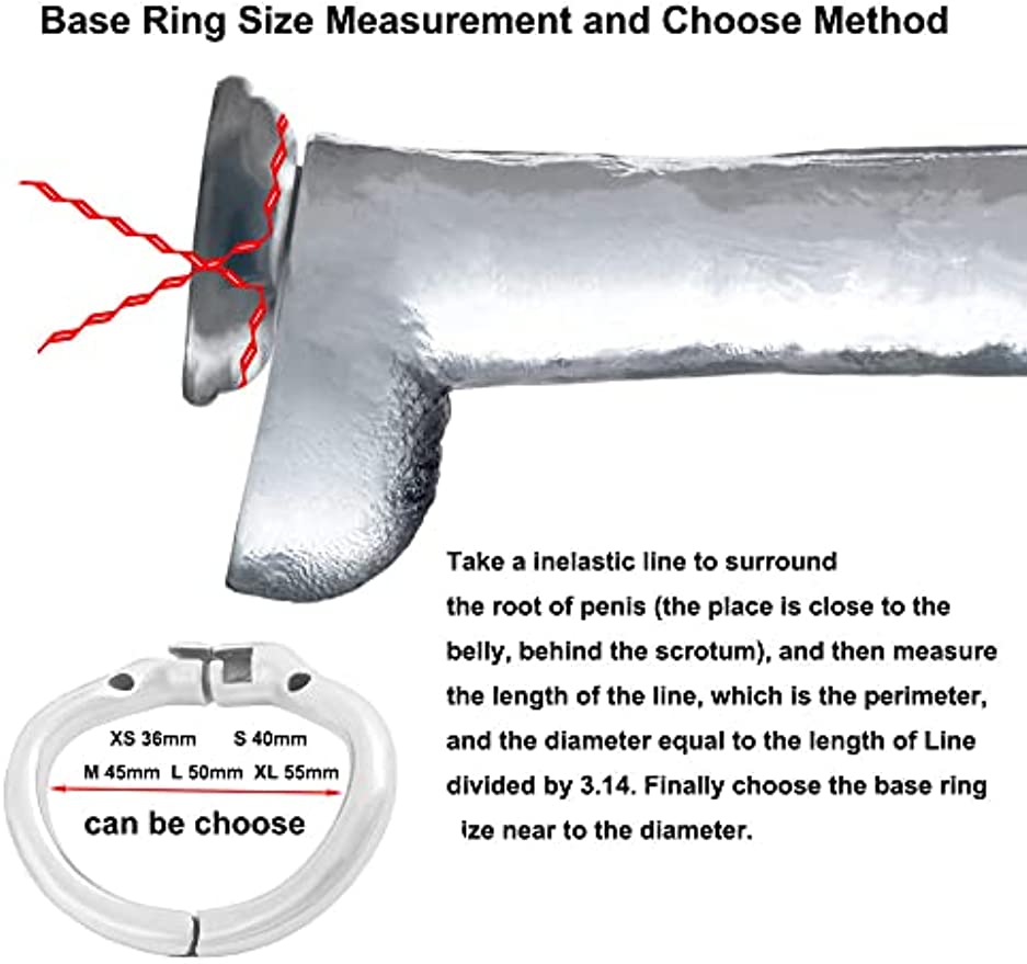 To ensure the perfect fit, we highly recommend measuring yourself before selecting a size. The cage measures 0.4 inches in length and 1.26 inches in diameter, with a distance of 0.85 inches from the end of the cage to the base ring. You can choose from five different sizes based on the inner diameter of the clamp ring.