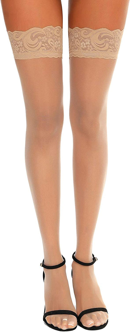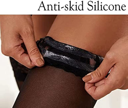 Lace Thigh High Stockings - Antiskid Silicone - Shimmery Pantyhose