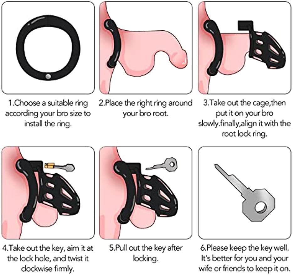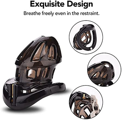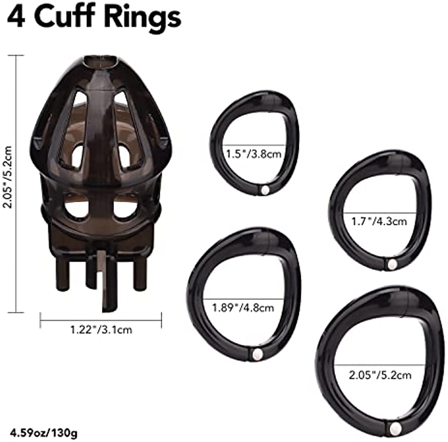 The cage is made from durable materials to ensure long-lasting use and is designed to fit comfortably. The set includes four rings in various sizes, allowing you to find the perfect fit for your needs.