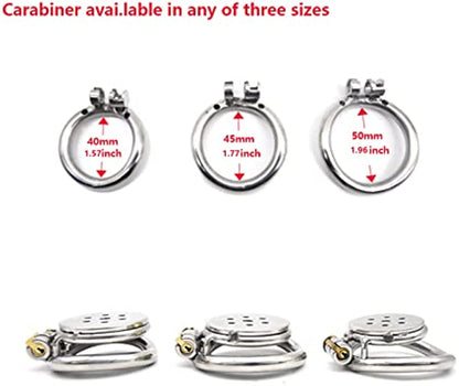 To ensure a comfortable fit, this chastity device comes with three ring sizes: 40mm/1.57inch, 45mm/1.7inch, and 50mm/1.9inch. Choose the ring size that best fits your anatomy and desired level of restraint.