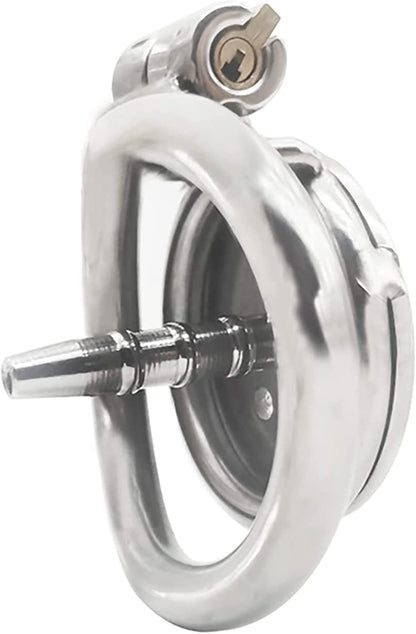 Introducing the Male Metal Chastity with Catheter, a sophisticated and exciting addition to your chastity play collection. This chastity device is available in two styles: small chastity lock and large chastity lock, allowing you to choose the size that suits your needs and desires.