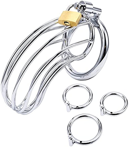 Experience the ultimate in sensual restraint with our Metal Chastity Cage with 3 Rings. Crafted from durable steel, this silver locked cage is designed to fulfill your desires for erotic control and intense pleasure.