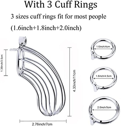 The cage comes with three rings of varying sizes, allowing you to find the perfect fit for a comfortable and secure experience. Simply choose the ring that suits you best, slide the cage over your penis, and lock it in place using the included lock and two keys. Embrace the exhilarating sensation of being confined and at the mercy of your partner's desires.