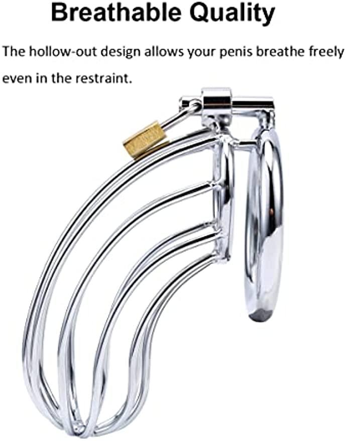 Made from chrome-plated metal, this chastity cage combines strength, durability, and a sleek appearance. The solid construction ensures that your desires remain locked away, enhancing the thrill of submission and power play.
