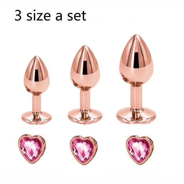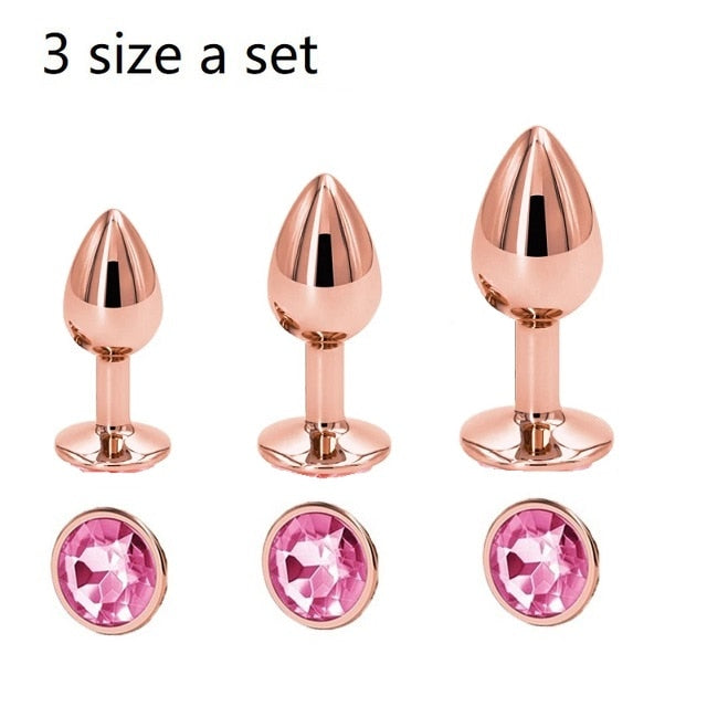 Rose Gold Crystal Metal Anal Beads Butt Plug Set | Sex Toy