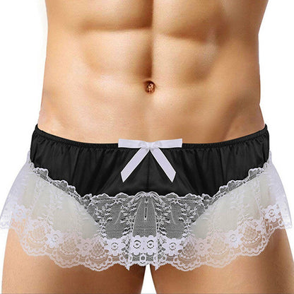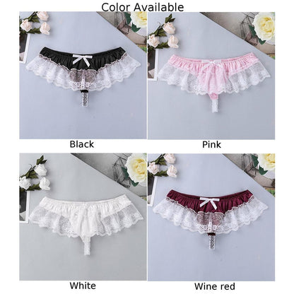 * Item Description:Men Sissy Lace See-through Panties Sexy Satin G-String Thong Briefs Underwear