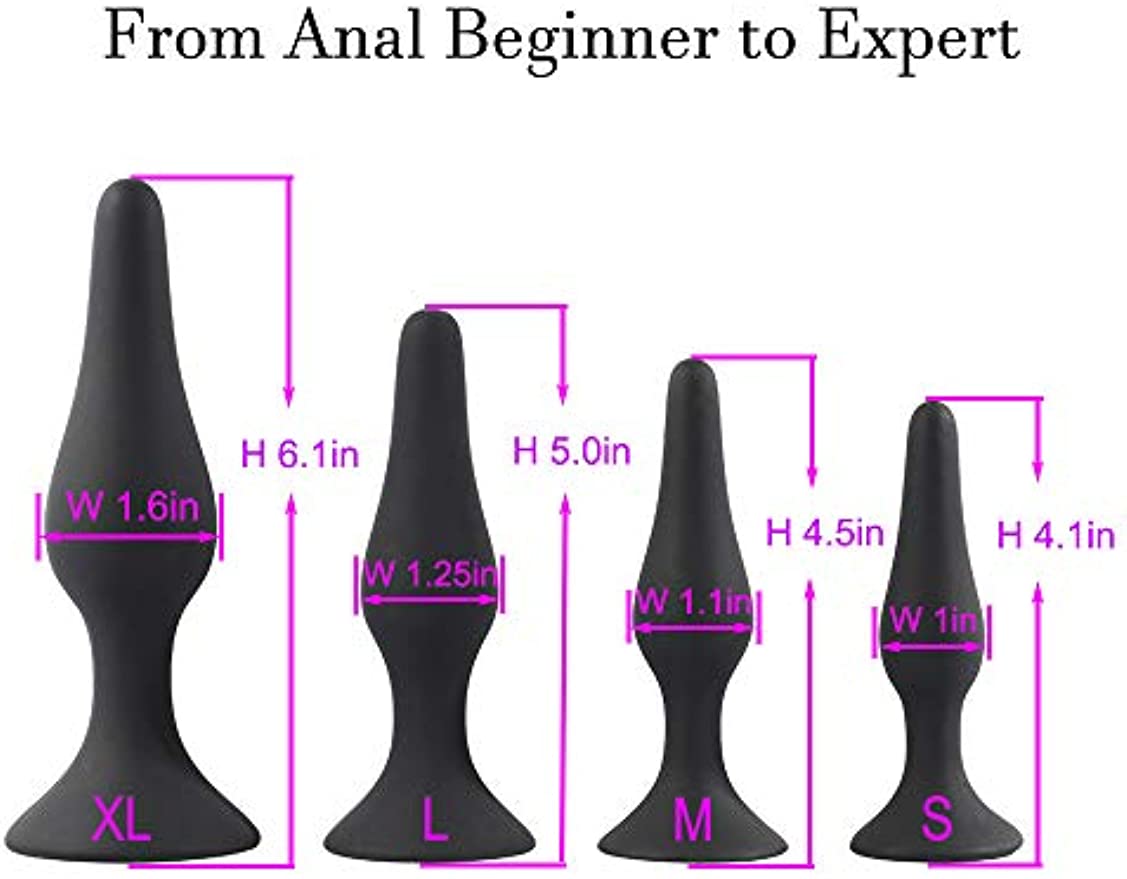 Silicone Butt Plugs Trainer Set, 4-Piece, Black