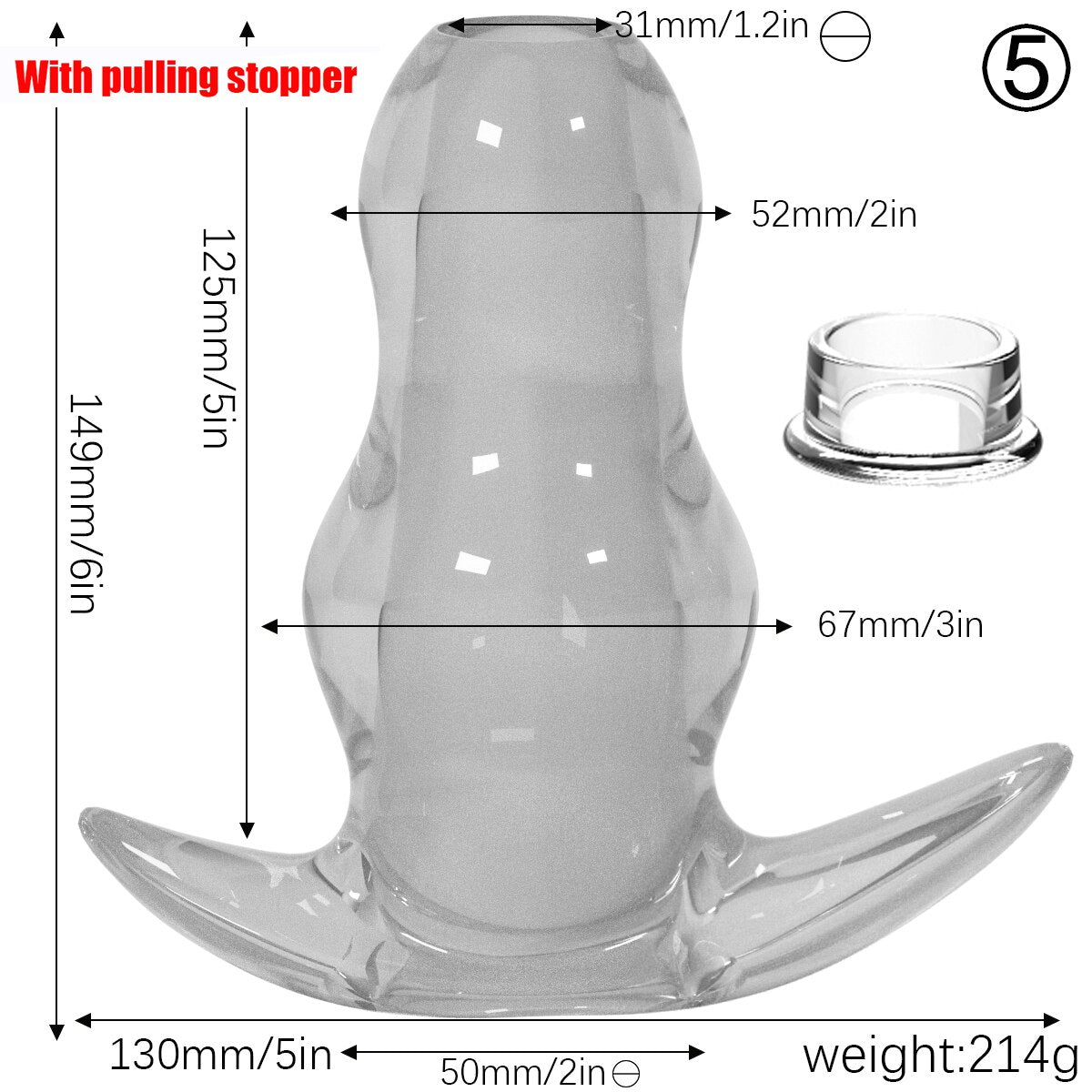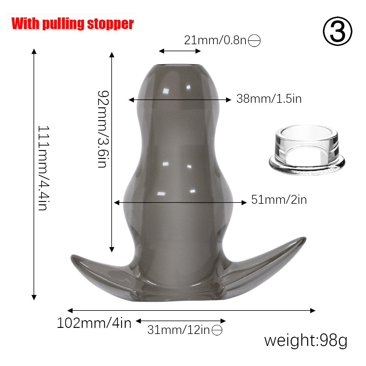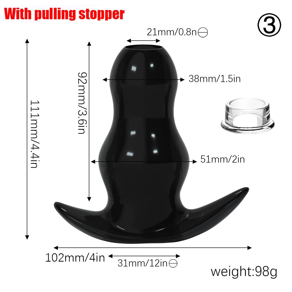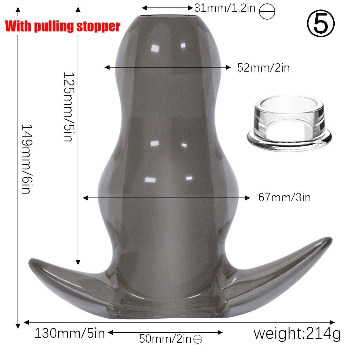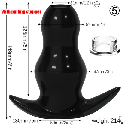 Size(Total length*First section width*Second section width): 70*25*32mm(Hollow plug-S); 90*32*42mm(Hollow plug-M); 105*37*51mm(Hollow plug-L); 128*46*60mm(Hollow plug-XL); 145*51*70mm(Hollow plug-XXL)