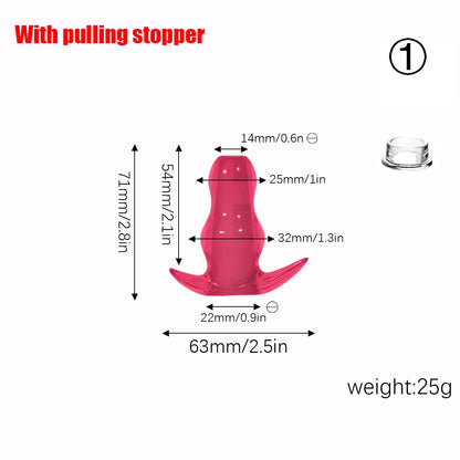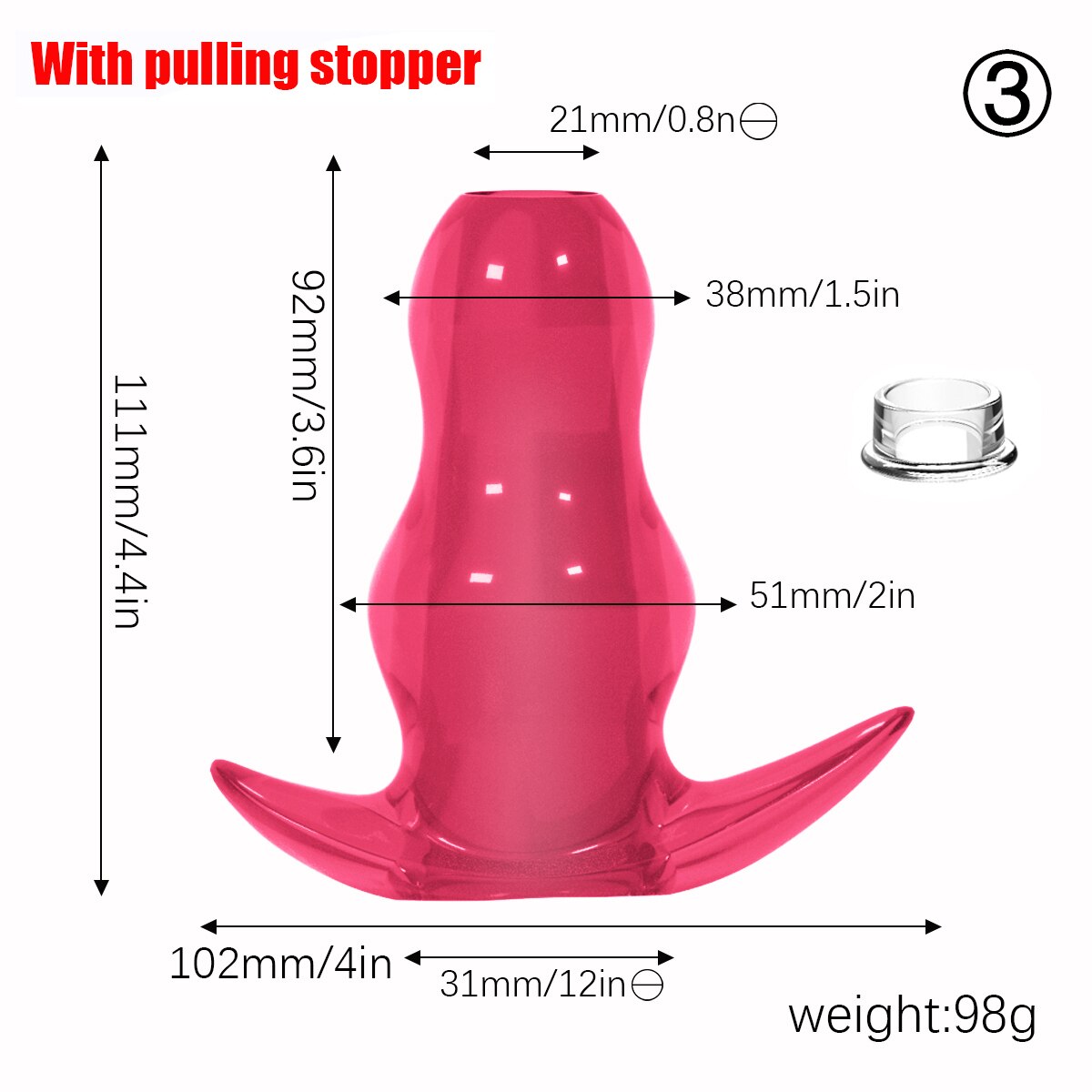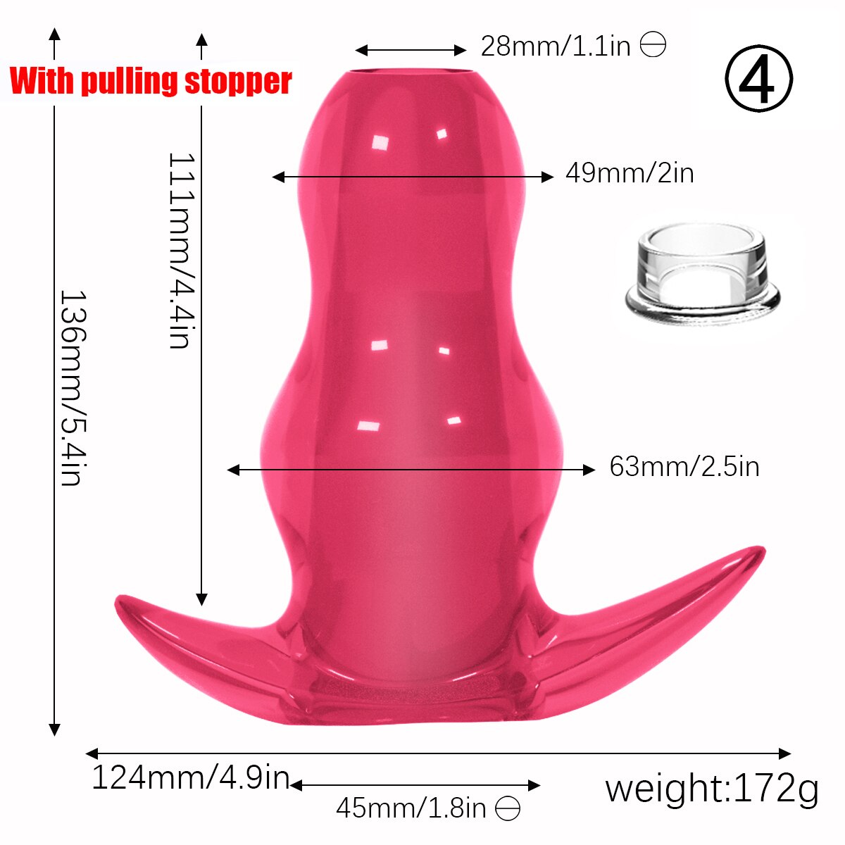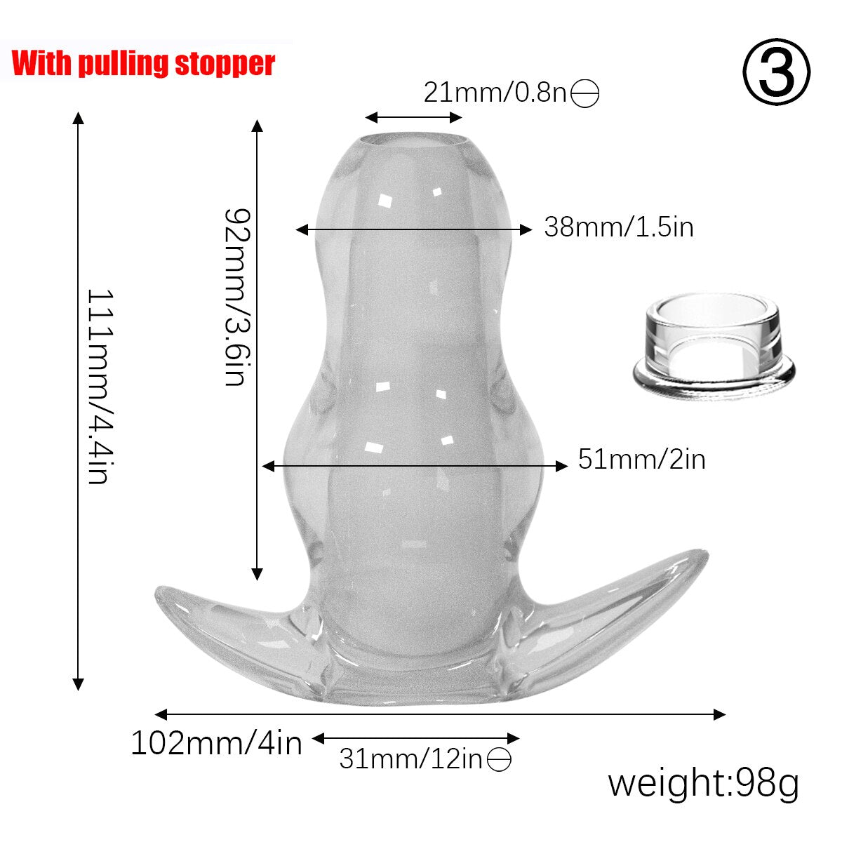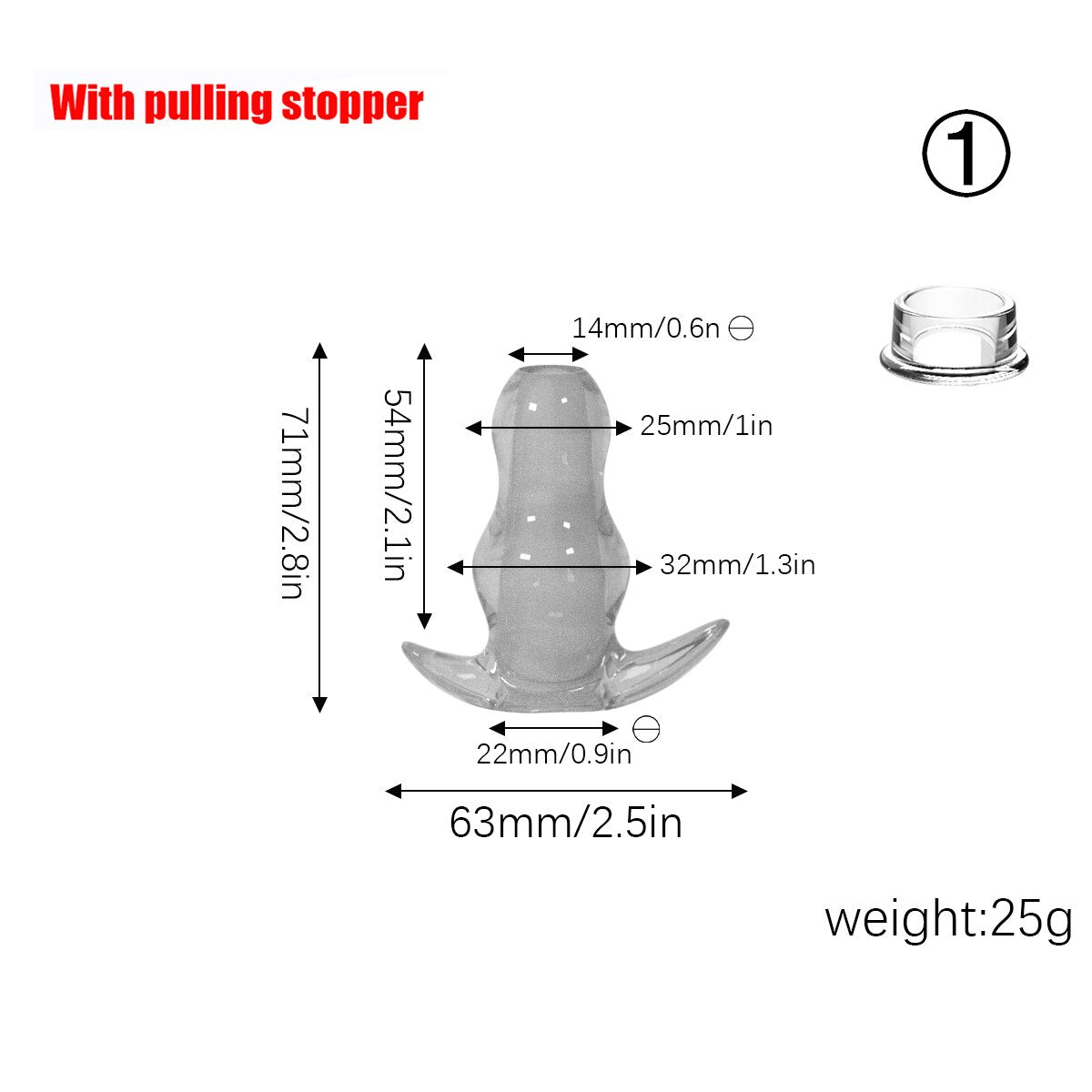 Size(Total length*First section width*Second section width): 70*25*32mm(Hollow plug-S); 90*32*42mm(Hollow plug-M); 105*37*51mm(Hollow plug-L); 128*46*60mm(Hollow plug-XL); 145*51*70mm(Hollow plug-XXL)