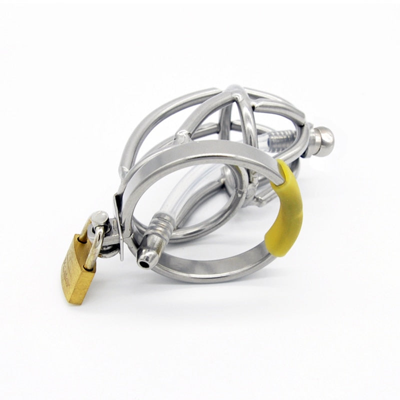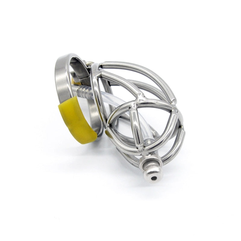 Stainless Steel Chastity Device with Catheter - Cage and Belt