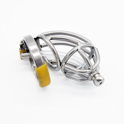 Immerse yourself in the discreet allure of this Stainless Steel Chastity Device with Catheter. The handcrafted cage, support ring, and locking mechanism ensure a secure and comfortable fit. The silicone tube, screwed in the middle of the cage, adds an extra layer of pleasure.