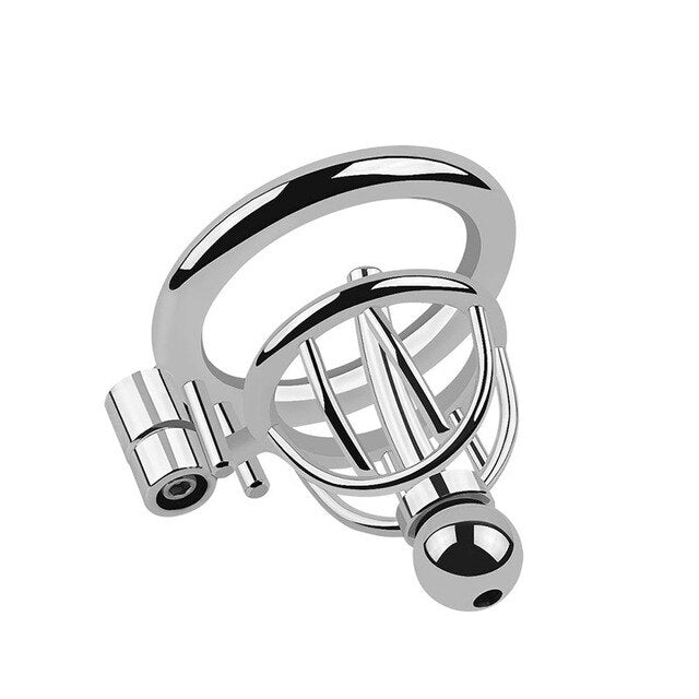 Stainless Steel Cock Cage - Male Chastity Device with Urethral Catheter