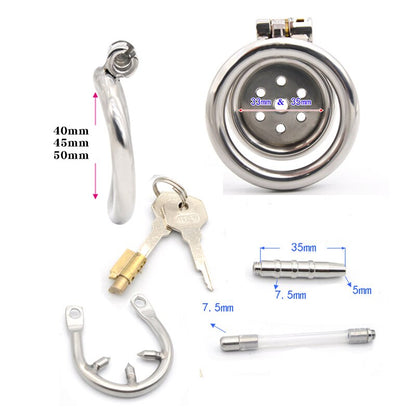 Introducing the Super Small Penis Ring Chastity Cage, the ultimate Locked In Lust Device designed for an exquisite blend of style, comfort, and control. This complete set A offers a comprehensive package, featuring a cage, a base ring, a soft tube, a metal tube, and an anti-off ring—all crafted from high-quality 316 Stainless Steel.